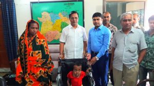 ভালুকা উপজেলা পরিষদের অর্থায়নে সেলাই মেশিন ও হুইল চেয়ার বিতরণ
