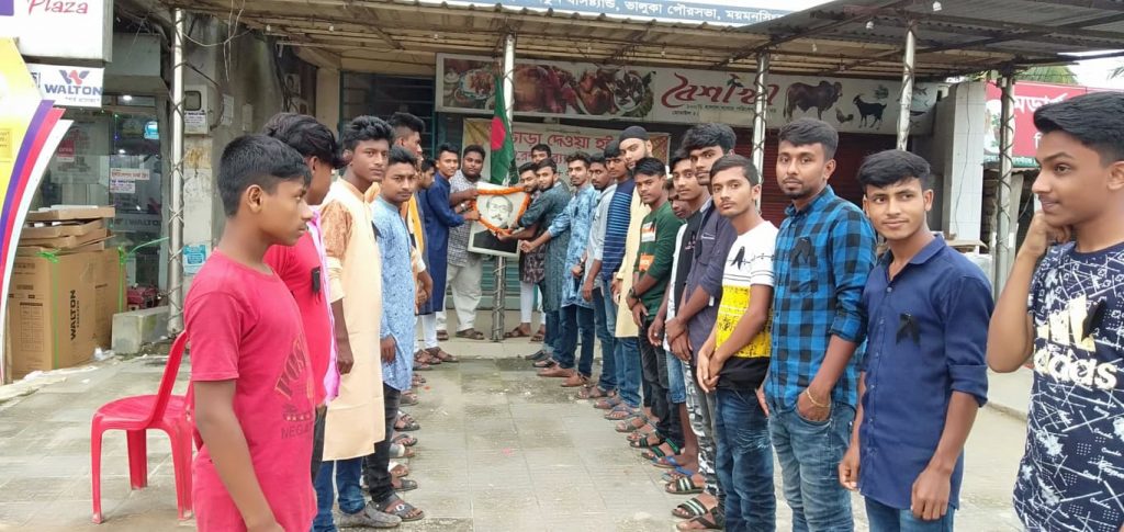 পরে জতির জনকের অস্থায়ী প্রতিকৃতিতে পৌর ছাত্রলীগ নেতা মাহিবুল ইসলাম নিউটনের নেতৃত্বে ফুল দিয়ে শ্রদ্ধা নিবেদন করা হয়।