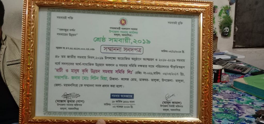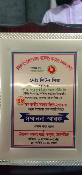 মাটি ও মানুষ কৃষি উন্নয়ন সমবায় সমিতি লিঃ এর সভাপতি মো. লিটন মিয়া বলেন, ‘কাজের স্বীকৃতি স্বরুপ সম্মাননা প্রাপ্তিতে আমি অত্যান্ত গর্বিত ও আনন্দিত। এ অর্জন আমার একার নয়। এ সম্মাননা প্রপ্তি আমার সমিতির সকল কর্মকর্তা-কর্মচারী ও সদস্যগণেন জন্যই সম্ভব হয়েছে। আমি সকলের দোয়া ও সহযোগীতা নিয়ে দেশ ও সমাজের জন্য কিছু করতে চাই’।