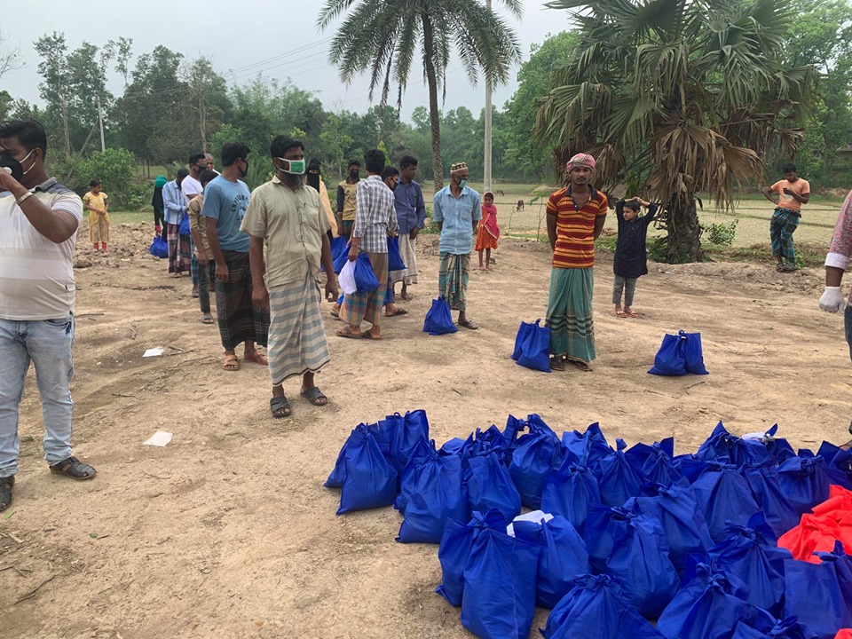সামাজিক দুরত্ব বজায় রেখে সুপ্তি সোয়েটার লিমিটেডের ব্যবস্থাপনা পরিচালক মোস্তাফিজুর রহমান মামুন ও উপজেলা ছাত্রদল নেতা শামীম আহাম্মেদের যৌথ অর্থায়নে উপহার হিসেবে ওই খাদ্যসামগ্রী বিতরণ করা হয়।