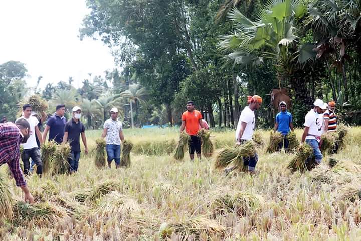 জাহিদুল ইসলাম খান, বিশেষ প্রতিনিধি: বৈশ্বিক মহামারী করোনা ভাইরাসের কারণে পাকা ধান কাটতে না পারা কৃষকদের ধান কাটতে ভালুকা উপজেলা ছাত্রলীগের নেতাকর্মীরা বাহিনী নিয়ে ধান ক্ষেতে নেমেছে। দিশাহারা কৃষকের পাশে দাঁড়িয়েছেন ছাত্রলীগের নেতারা। করোনা পরিস্থিতিতে ধান কাটার শ্রমিক না পাওয়ায় বর্তমানে ছাত্রলীগের স্থানীয় নেতাকর্মীরা কৃষকের ধান কাটা,ধান বাড়ি দেওয়া ও মাড়াই করে দিচ্ছেন।
