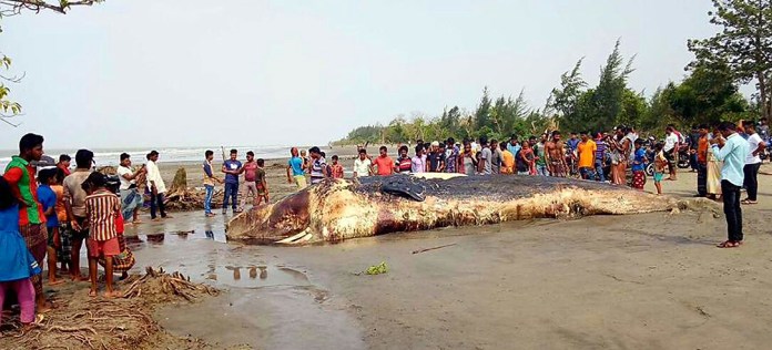 কুয়াকাটার সৈকতে ভেসে আসলো ৪০ ফুট লম্বা তিমি