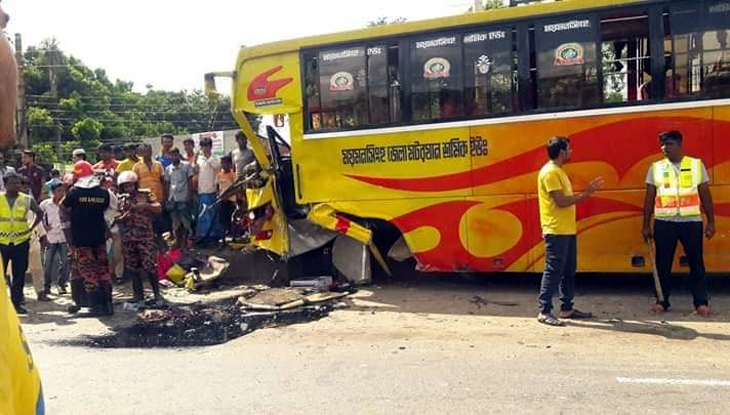 ভালুকায় বাস-ট্রাক সংঘর্ষে আহত ১০