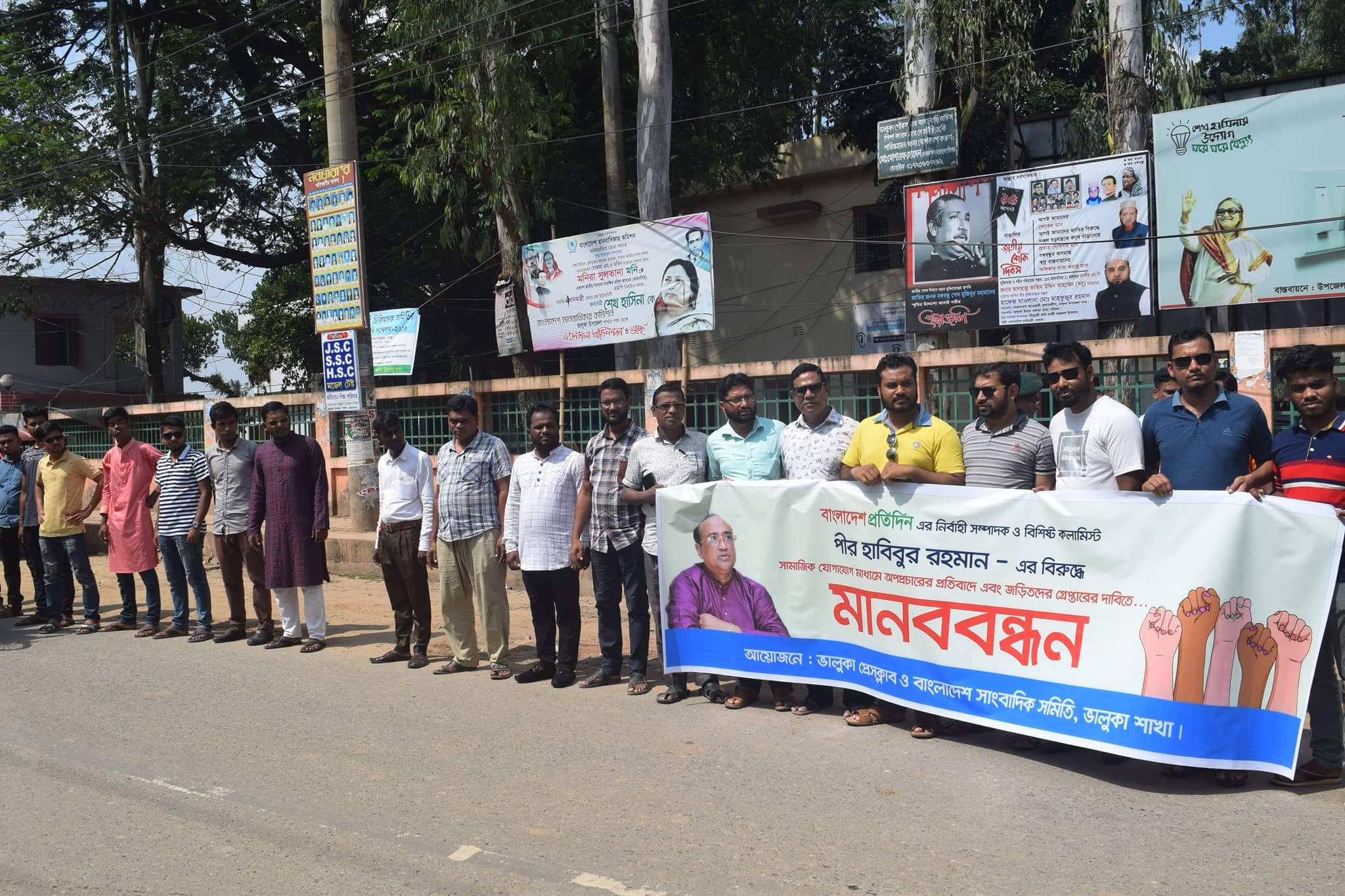 পীর হাবিবের বিরুদ্ধে অপপ্রচারের প্রতিবাদে ভালুকায় মানববন্ধন