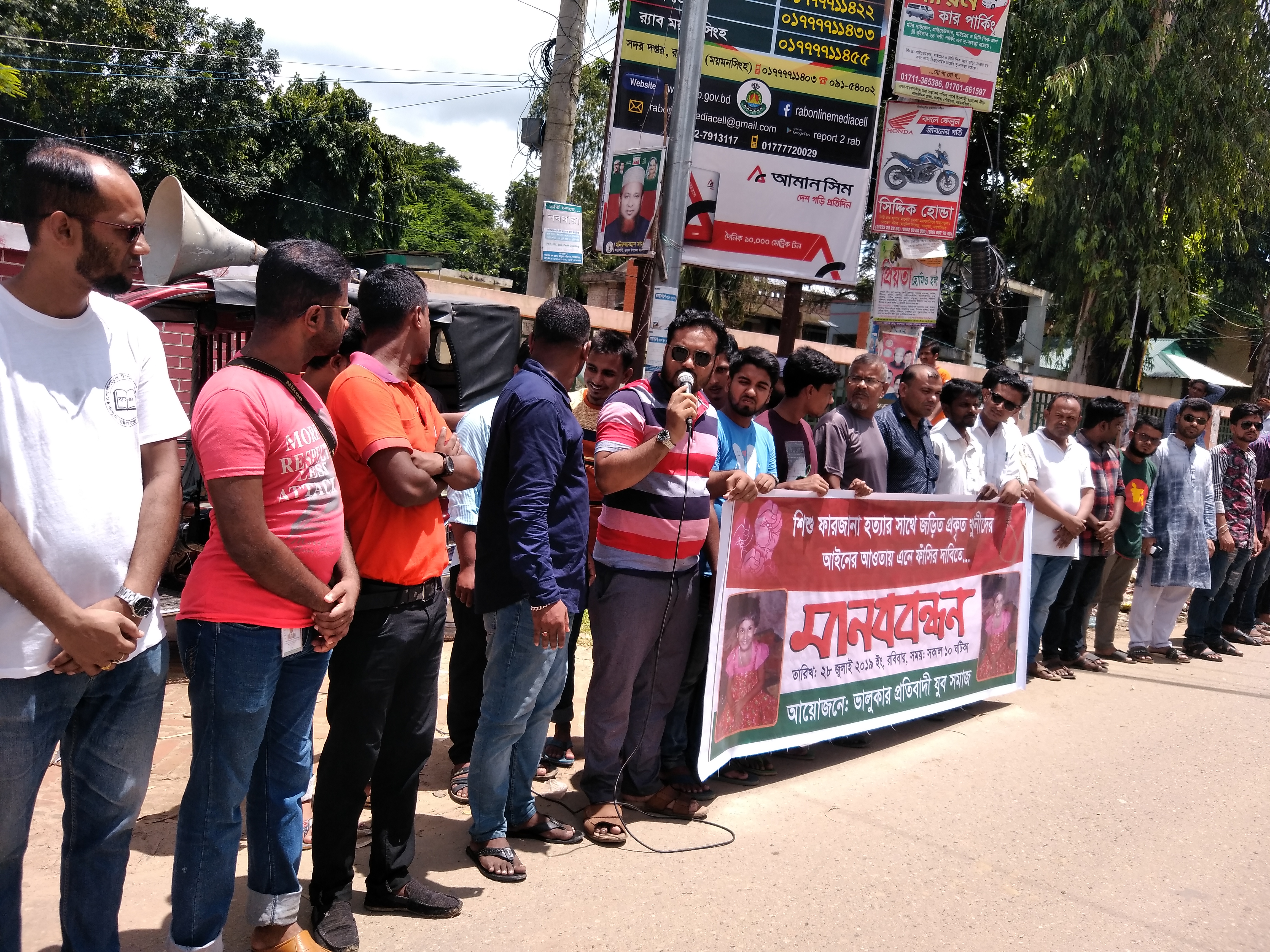 ভালুকায় শিশু ফারজানা হত্যার বিচারের দাবিতে মানববন্ধন