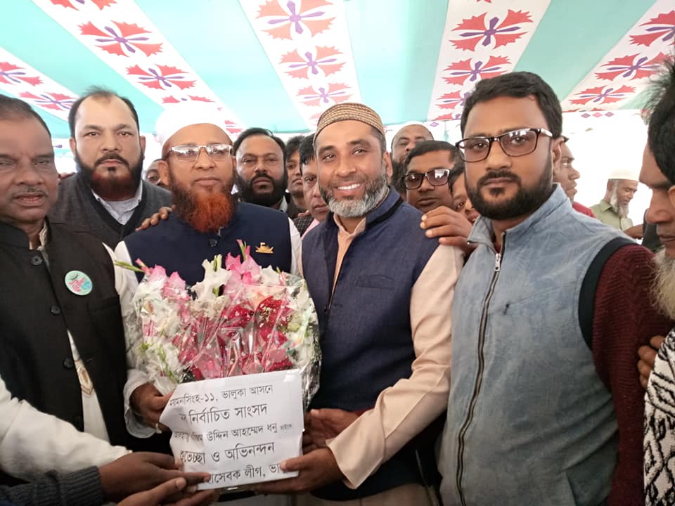 ভালুকার নয়া এমপি ধনুকে ফুলেল শুভেচ্ছায় সিক্ত করলেন সর্বস্তরের ব্যাক্তিগণ
