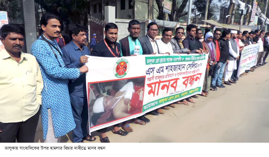 ভালুকায় সাংবাদিকের উপর হামলার বিচার দাবীতে মানব বন্ধন