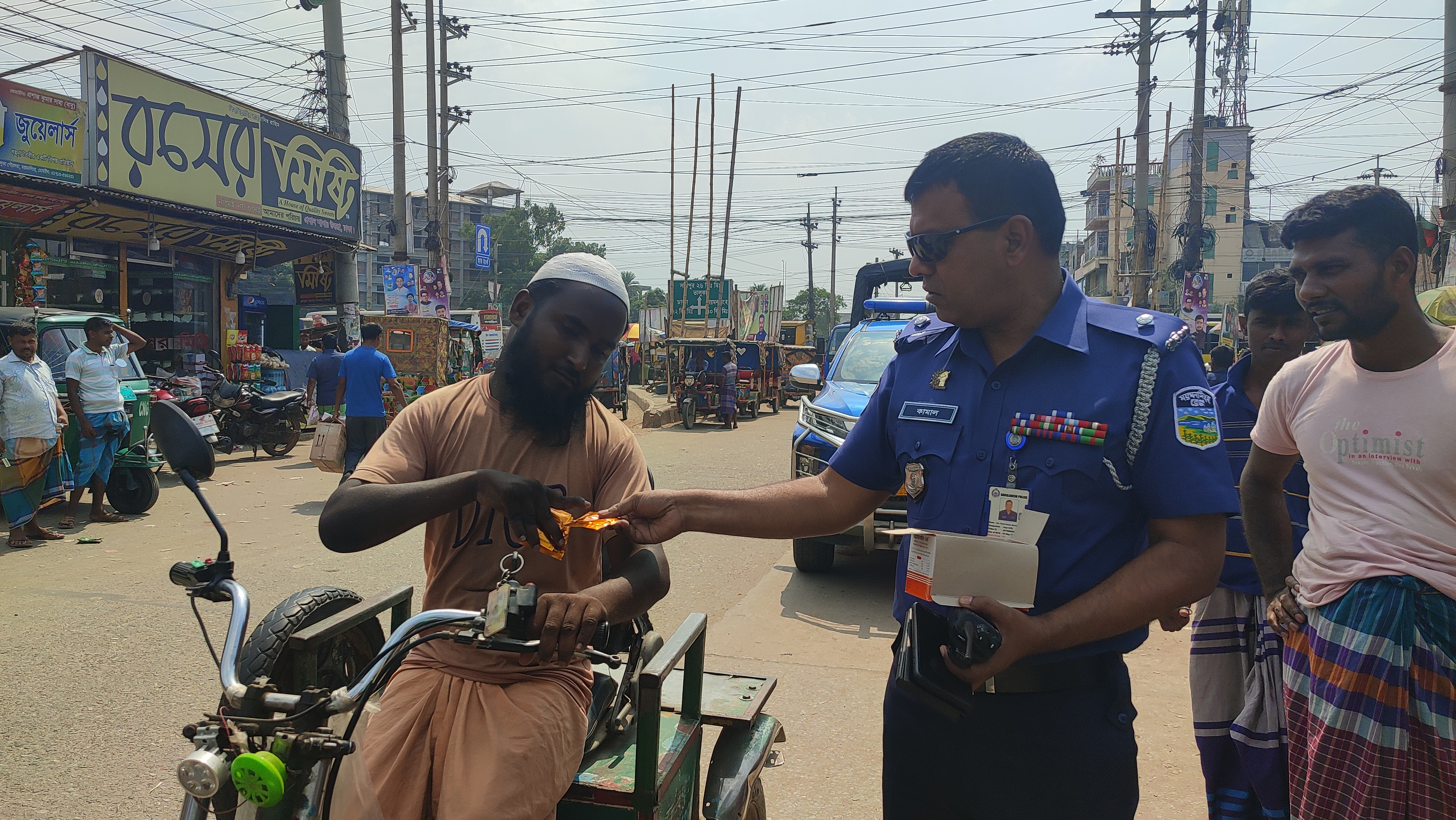 ভালুকায় ড্রাইভার ও পথচারীদের মাঝে খাবার স্যালাইন বিতরণ