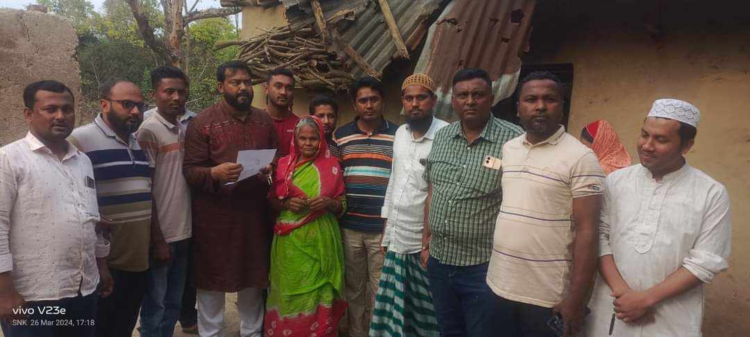 নিঃসন্তান অসহায় সাহারা খাতুনের ঘরের চাল দিয়ে দিলেন চেয়ারম্যান বাচ্চু