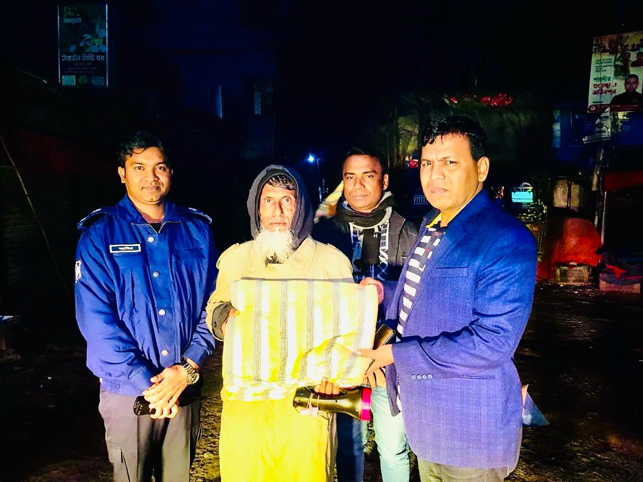 ভালুকায় নিরাপত্তারক্ষীদের মাঝে ওসির শীতবস্ত্র বিতরণ