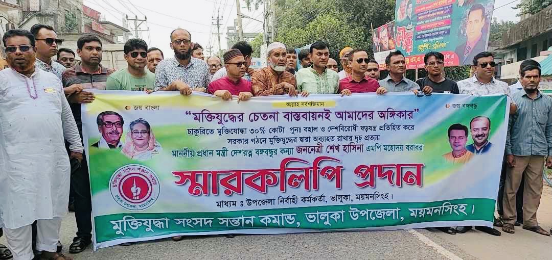 চাকুরিতে ৩০% কোটা পুনঃ বহালের দাবিতে ভালুকায় স্মারকলিপি প্রদান