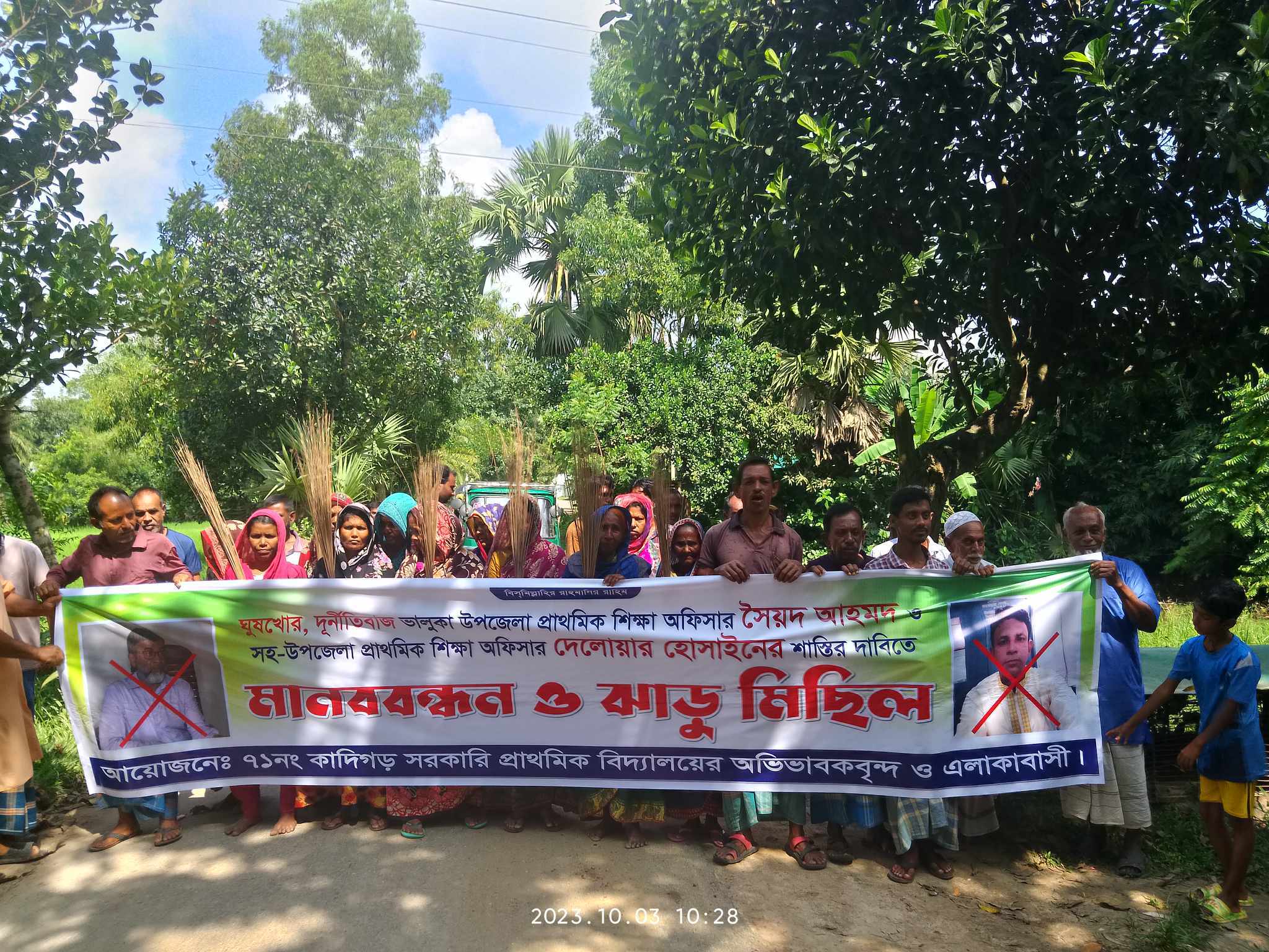 ভালুকায় টিইও-এটিইও’র বিরুদ্ধে মানববন্ধন ও ঝাড়ু মিছিল