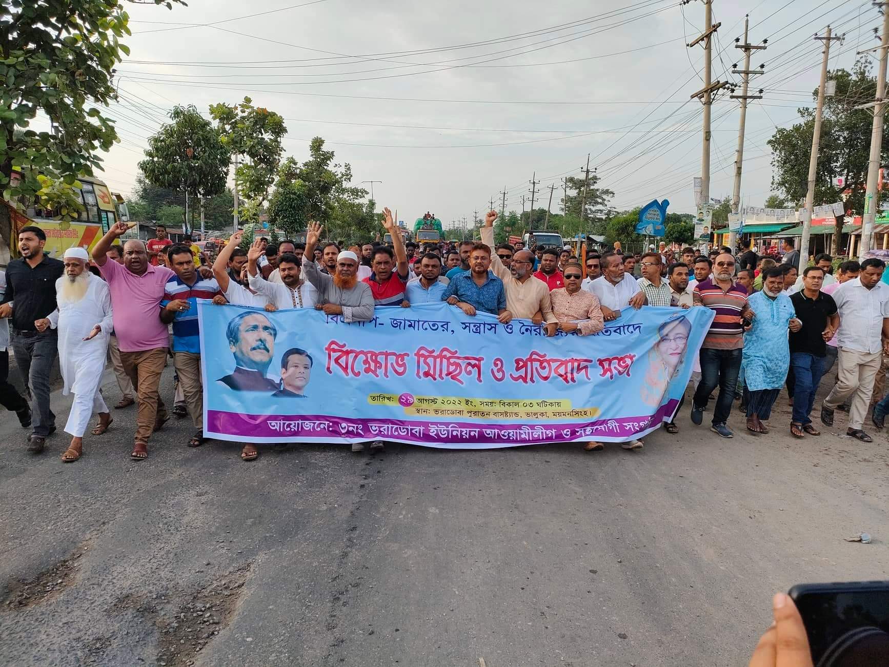 ভরাডোবায় আ’লীগের বিক্ষোভ মিছিল ও প্রতিবাদ সভা