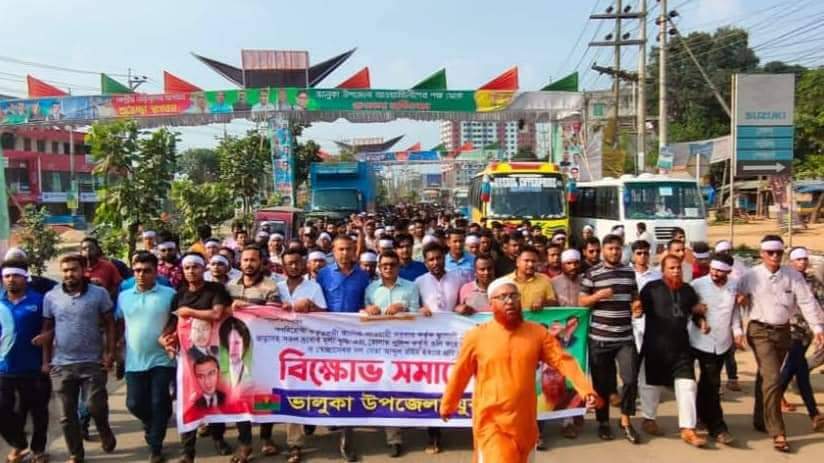 ভালুকায় যুবদল নেতা রাসেলের নেতৃত্বে বিক্ষোভ মিছিল