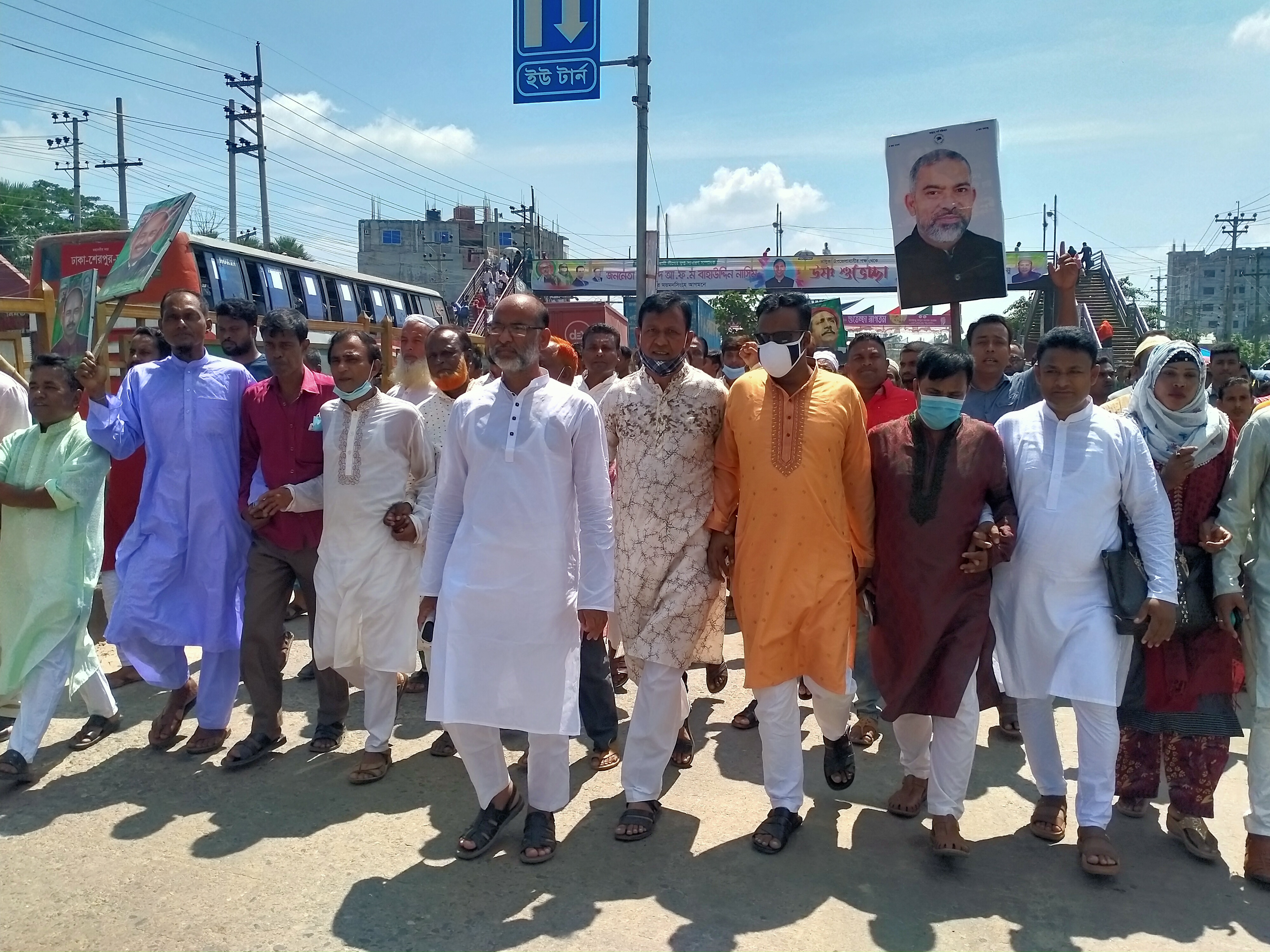 ভালুকায় কৃষকদের ক্ষতিপুরনের দাবীতে কাফনের কাপড় পড়ে বিক্ষোভ মিছিল ও মানববন্ধন