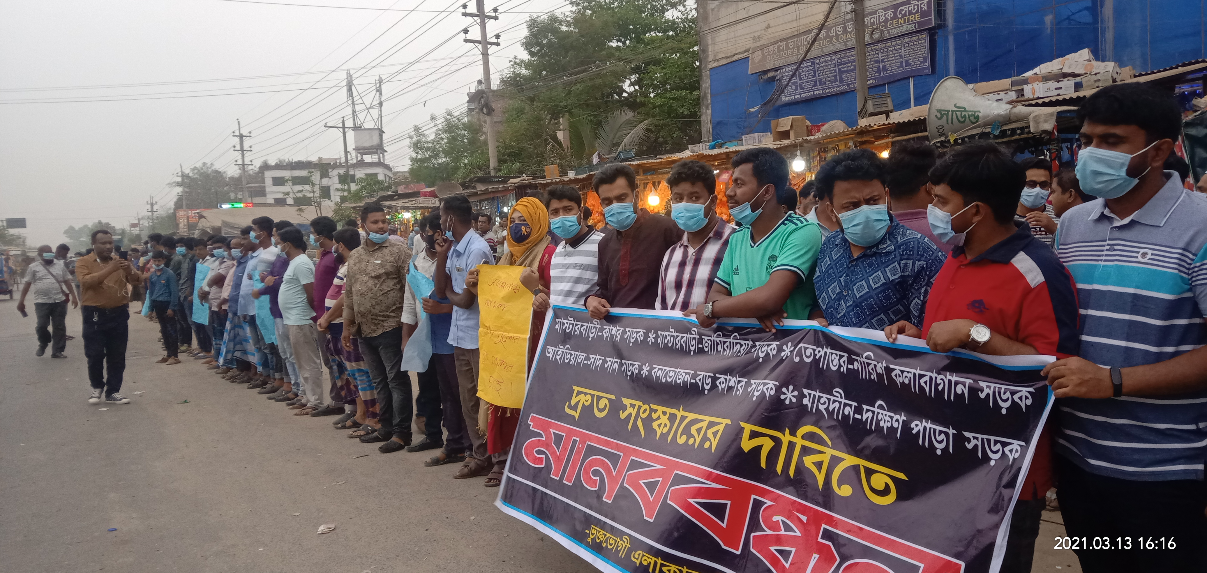 ভালুকায় রাস্তার সংস্কারের দাবিতে মানববন্ধন; মহাসড়ক অবরোধ