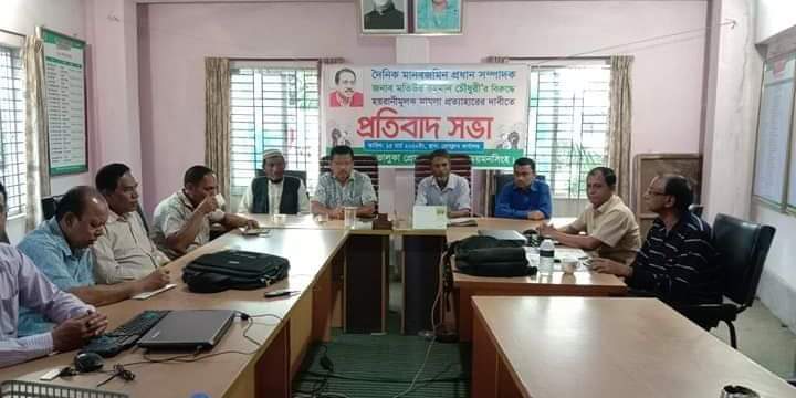 মানবজমিনের বিরুদ্ধে হয়রানীমূলক মামলা প্রত্যাহারের দাবীতে ভালুকায় প্রতিবাদ সভা