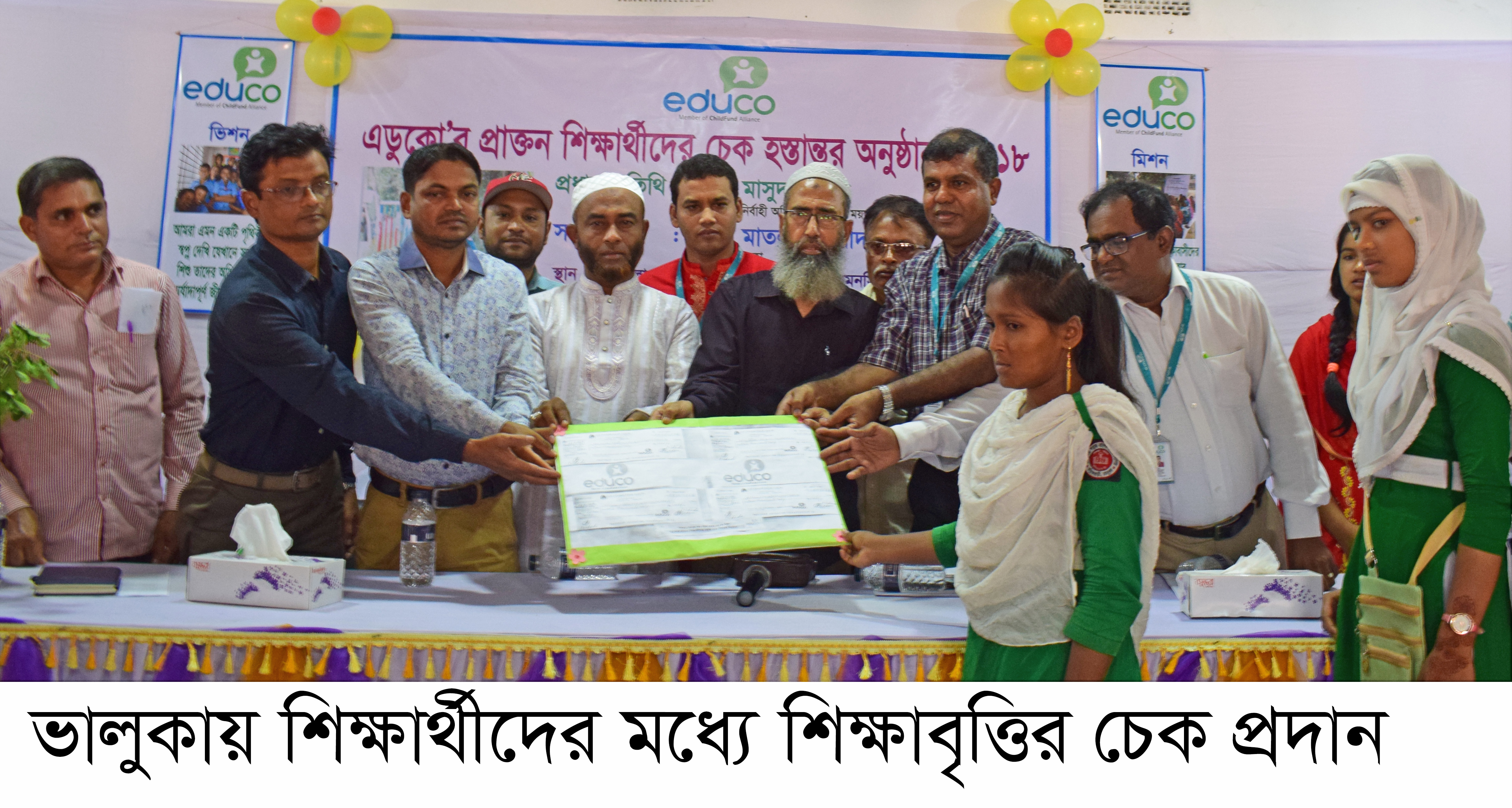 ভালুকায় শিক্ষার্থীদের মধ্যে শিক্ষাবৃত্তির চেক প্রদান