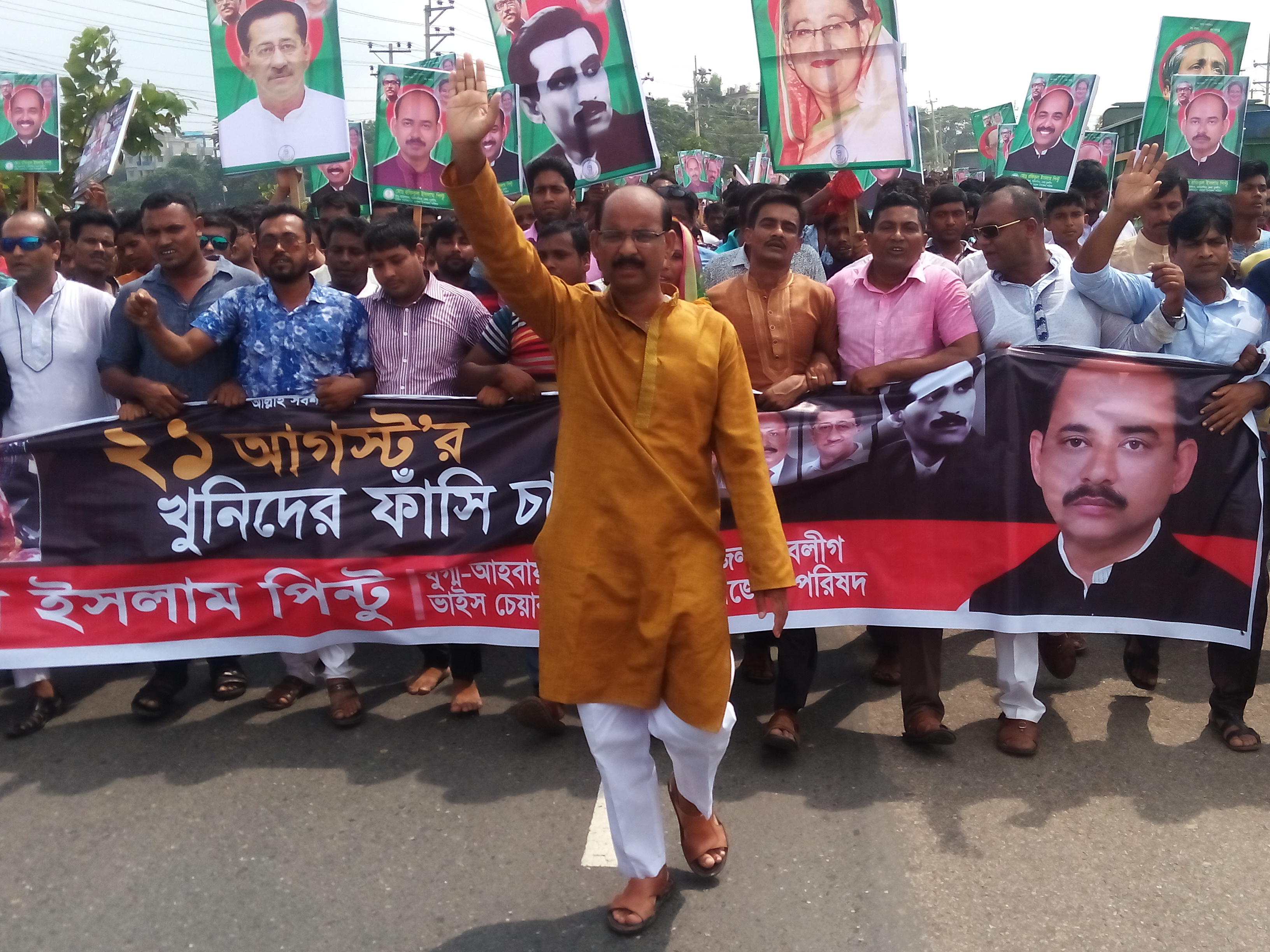 ভালুকায় রফিকুল ইসলাম পিন্টুর নেতৃত্বে বিশাল বিক্ষোভ মিছিল