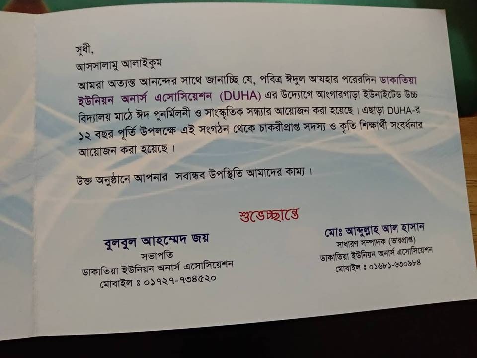 ভালুকায় ডাকাতিয়া ইউনিয়ন অনার্স এ্যাসোসিয়েশনের ঈদ পুনর্মিলনী ২৩ই আগস্ট